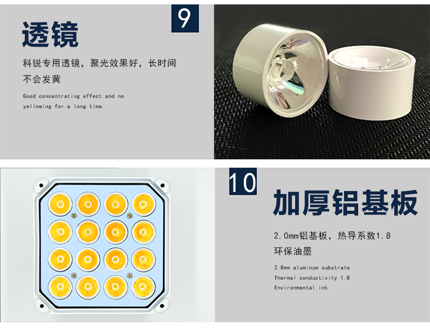 ★可選用不同角度(10?、25?、40?、60?、90?)的聚光透鏡集中有效光源,減少發(fā)散光損失,有效減少光污染;